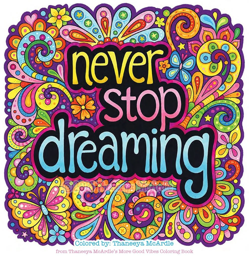 Below you can see a dozen emails from my coloring books. The first 5 images are from my Live for Today Coloring Book. The next 4 images are from my More Good Vibes Coloring Book, and the last 3 images are from my Good Vibes Coloring Book.